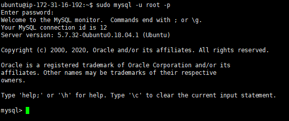 sudo mysql -u root -p