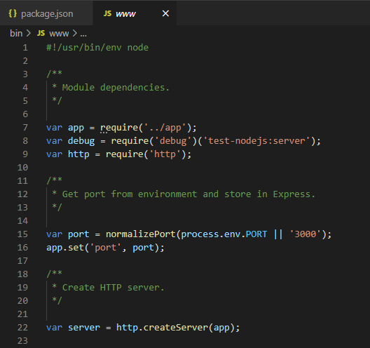 나는 express-generator로 프로젝트를 생성하여 기본적으로 node ./bin/www로 설정이 되어있는데, 대부분은 node index.js로 설정되어 있을 것 같다.