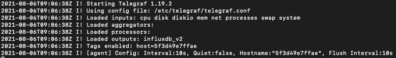 docker container를 아래와 같은 명령어로 실행하면, conf 설정대로 telegraf가 셋팅된다.