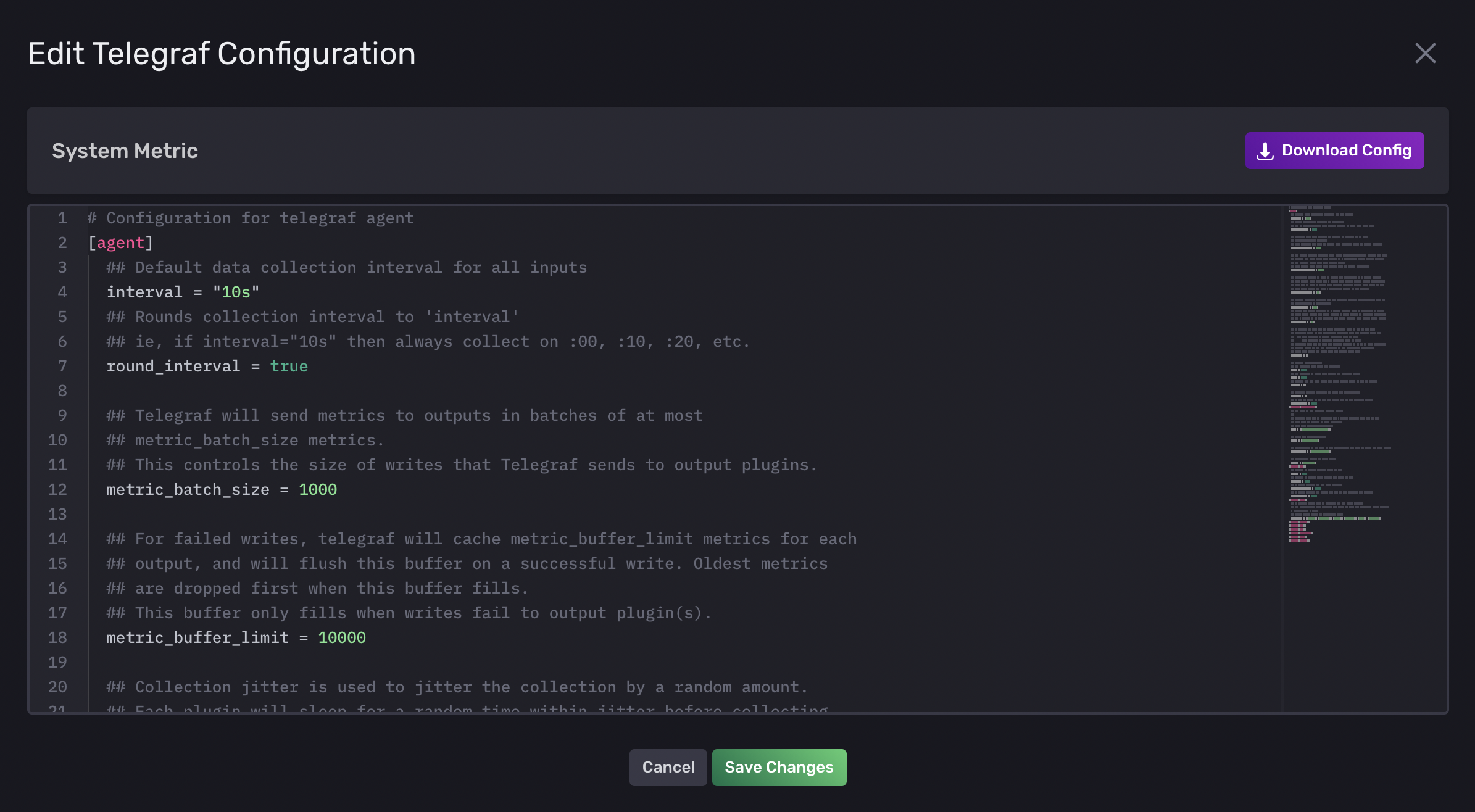 전 단계에서 생성한 telegraf를 누르면 configuration이 나오는데, 해당 파일을 다운로드한다.