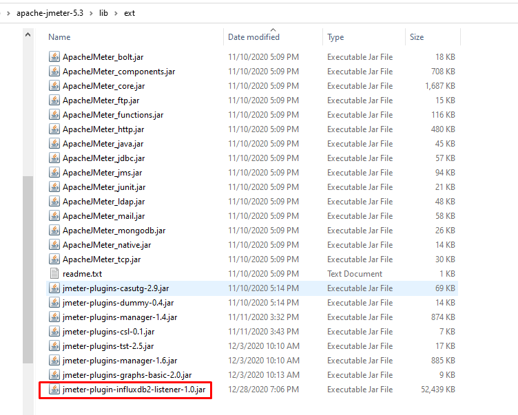 ~\[JmeterPath]\lib\ext에jmeter-plugin-influxdb2-listener-<version>.jar 파일 추가