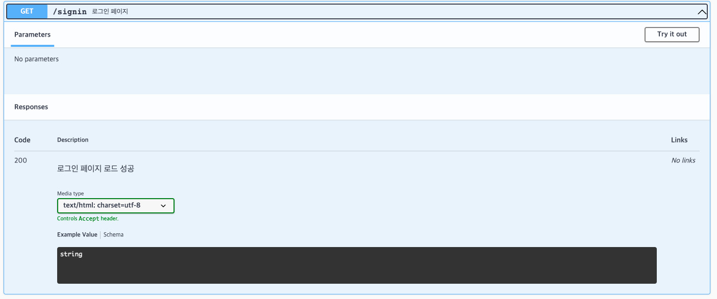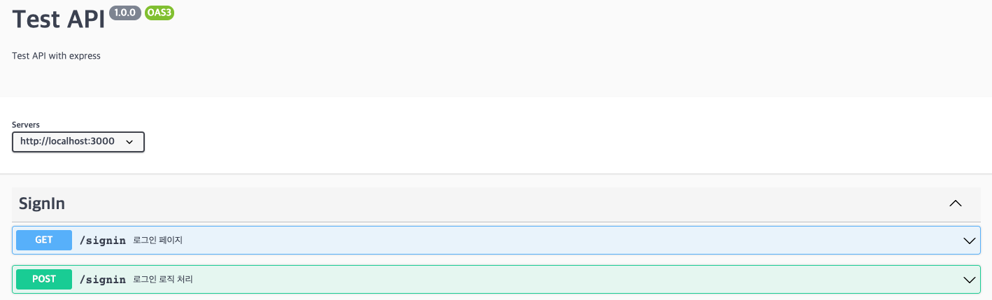 http://localhost:4000/api-docs/로 접근 시 아래와 같은 화면이 나타난다.