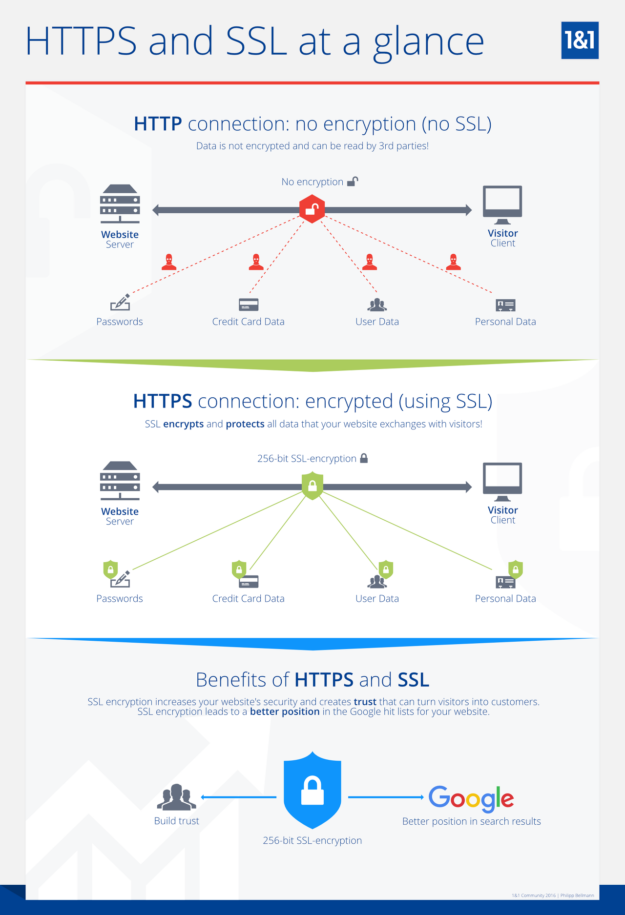 많은 웹사이트에서 HTTP를 사용하지만, 2014년에 Google은 사이트를 HTTPS로 전환할 것을 권장했다. 그 전까지는 전자 상거래 페이지가 있는 사이트만 HTTPS를 사용하곤 했다.
