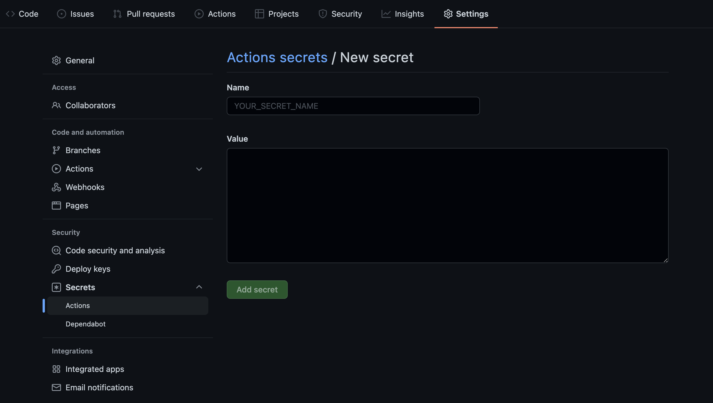 Github Repository Secrets 등록