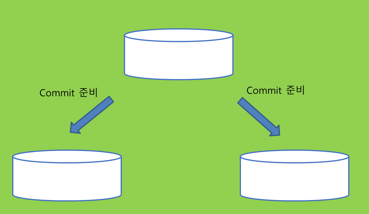 메시지를 받은 DB에서는 Commit 작업을 위한 준비를 진행한다. 이후 데이터를 영속할 수 있는 준비가 완료되면 조정자에게 준비가 완료되었음을 알리고, 반대로 Commit 할 수 없다면 불가하다는 메시지를 전달한다.