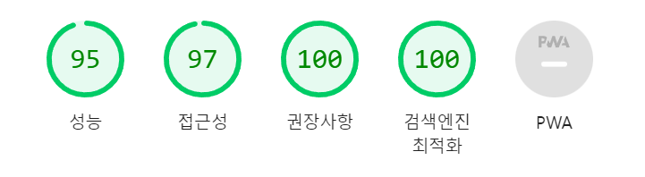 위와 같이 코드를 변경했더니, 성능 점수가 크게 향상되었다.