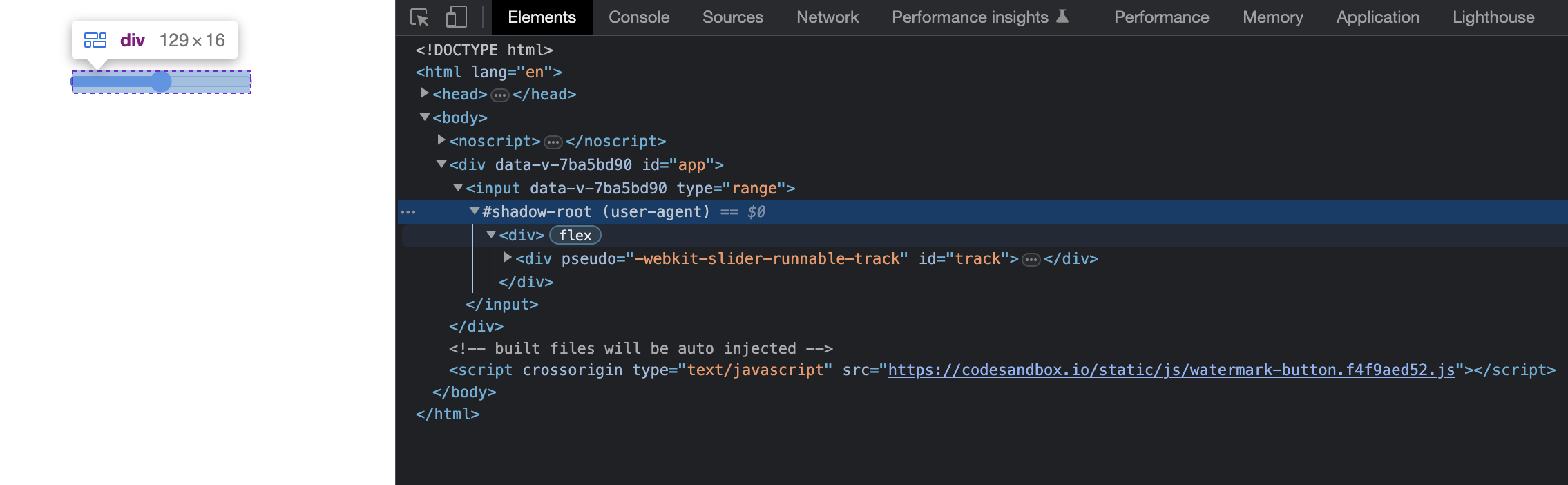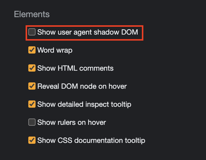 개발자 도구 설정에서 'Show user agent shadow DOM'을 체크한다.