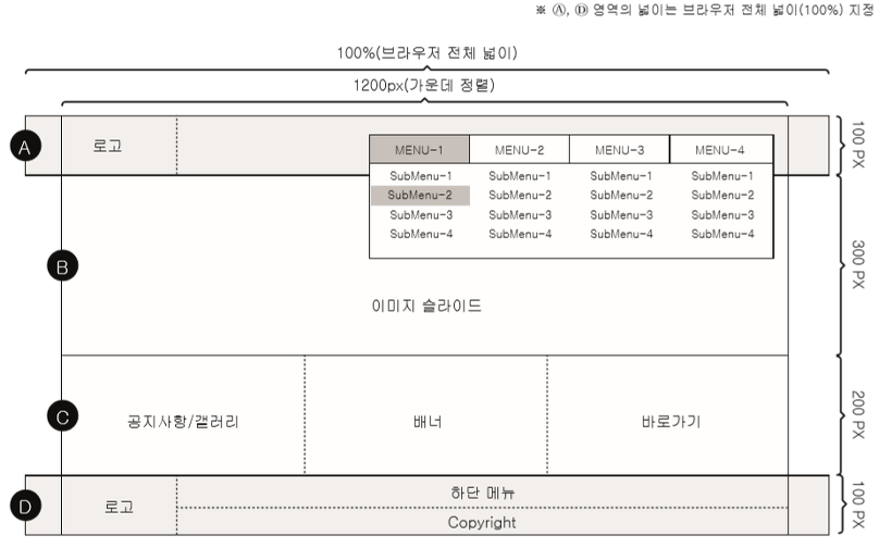 [큐넷 자료실 웹디자인기능사 공개 와이어프레임 참고]