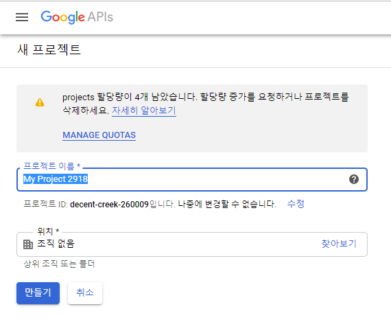 (없을 시에는 API 및 서비스 검색 창에서 검색)