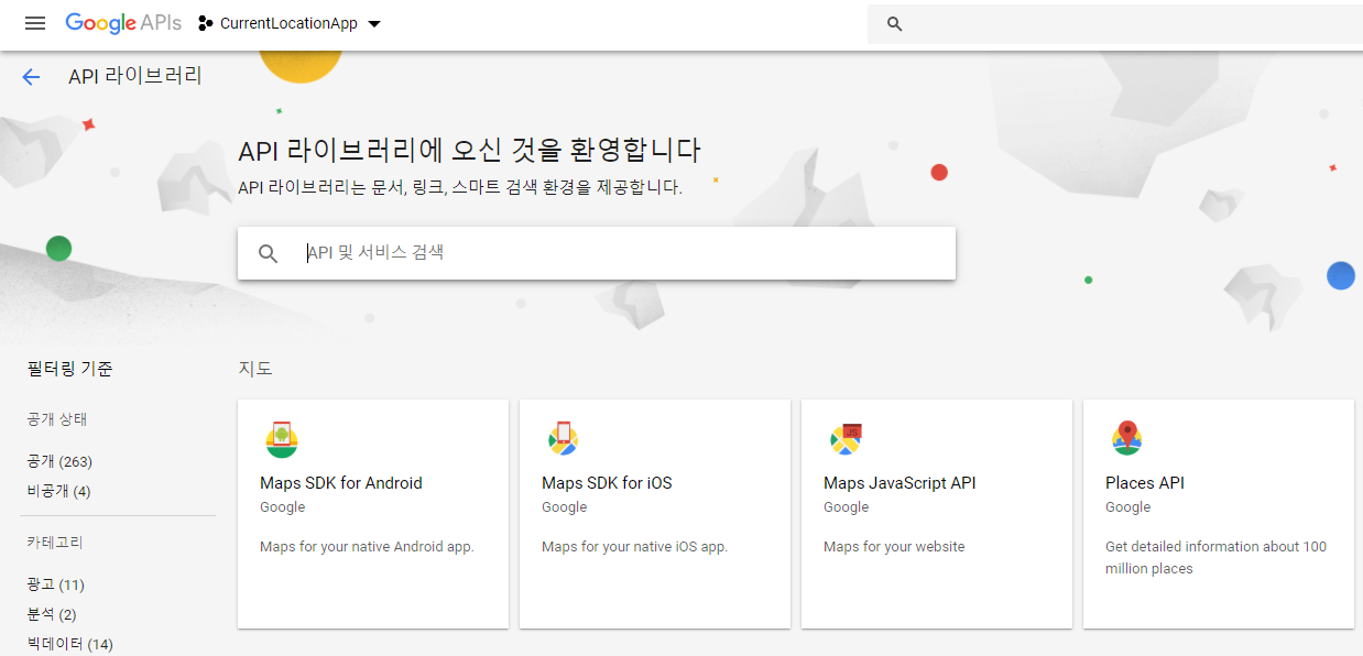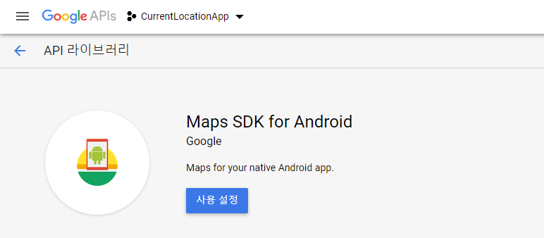 API 라이브러리를 눌러 이동한 후, Maps SDK for Android 서비스를 선택해줍니다.